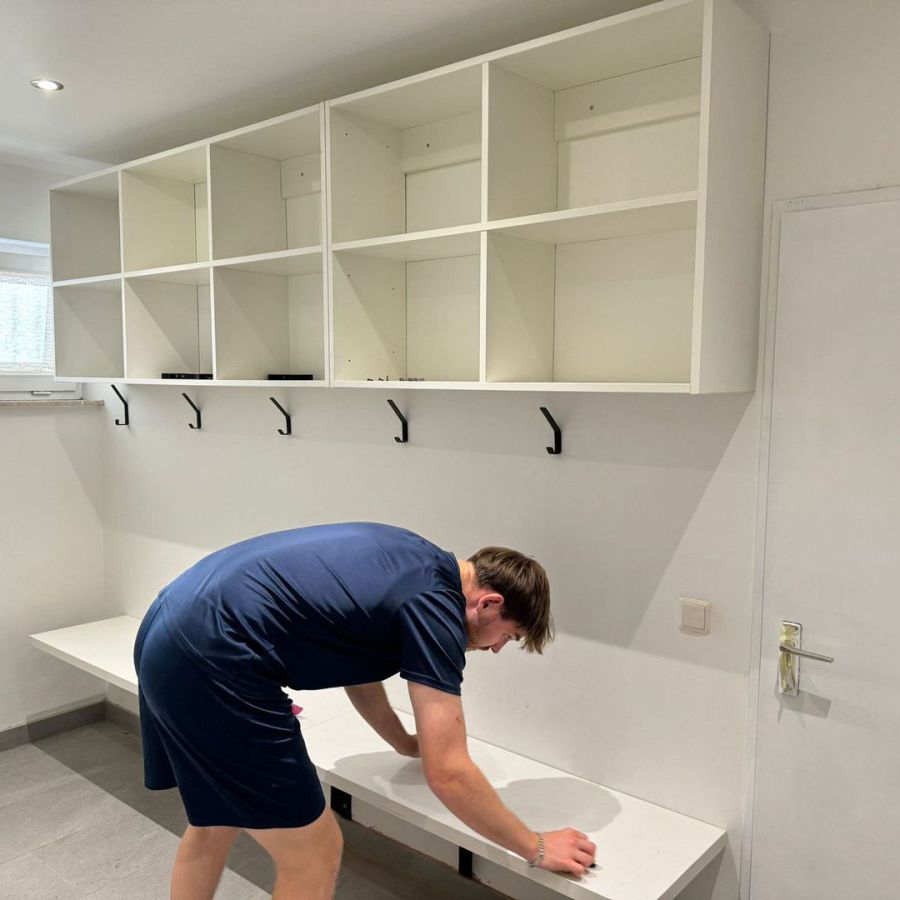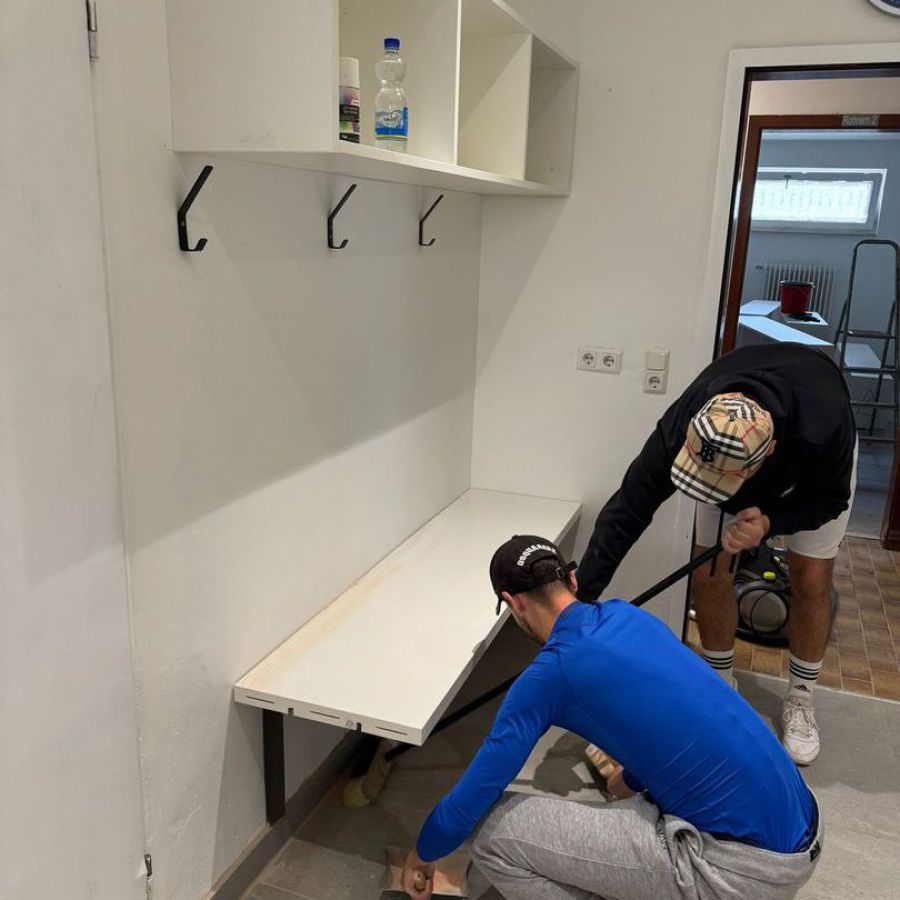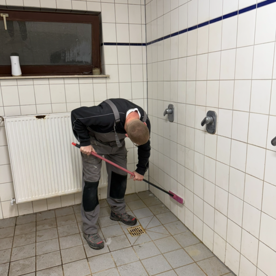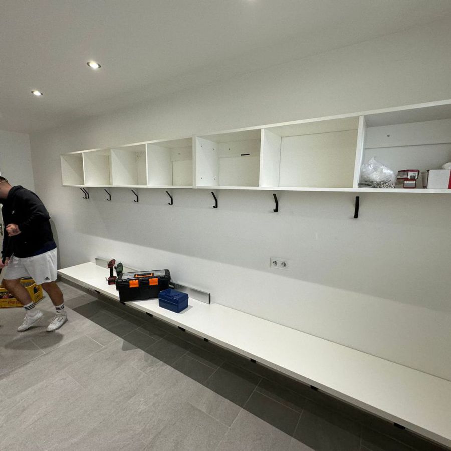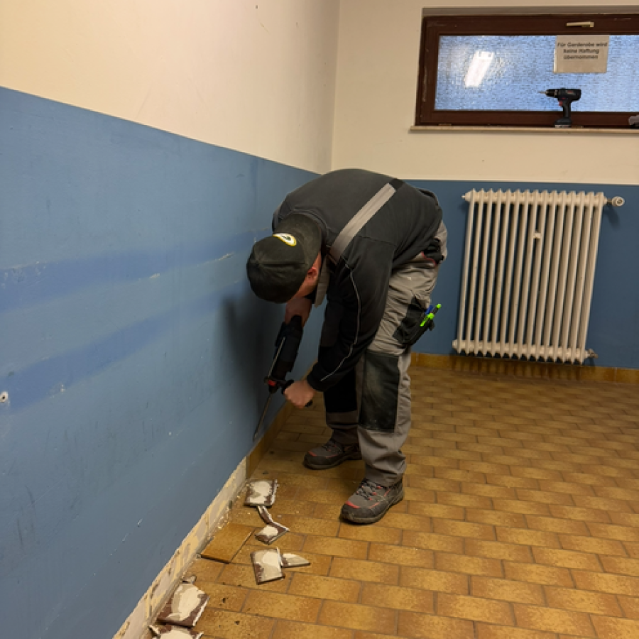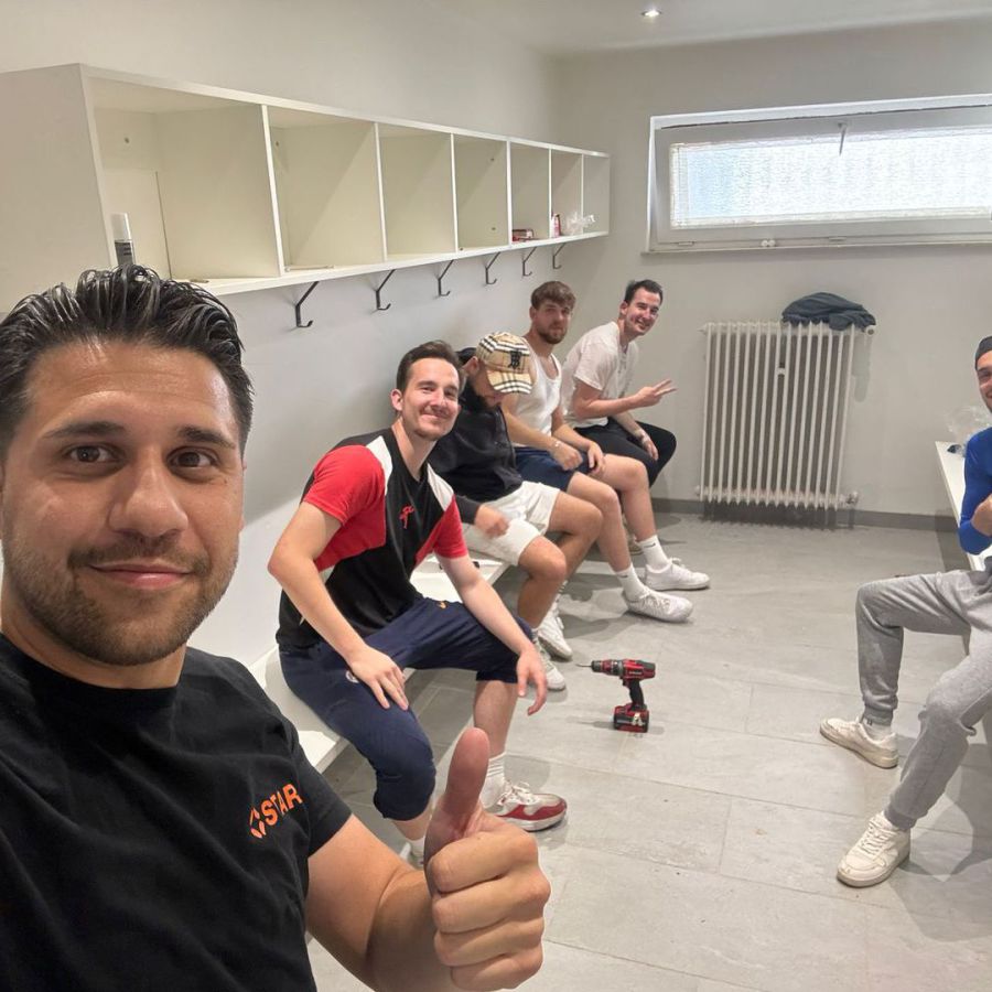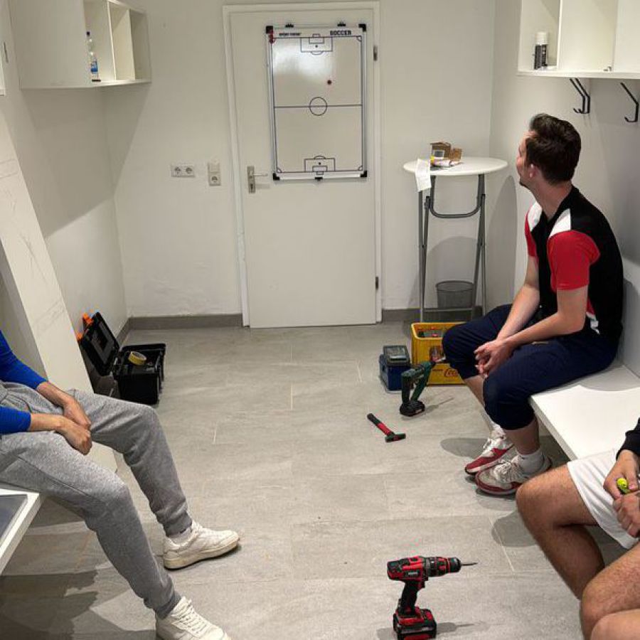 Wie man unschwer erkennen kann, sind unsere Kabinen inzwischen sehr in die Jahre gekommen. Etliche Heimspiele, Trainingseinheiten und ekstatisch zelebrierte Kabinenfeiern haben ebenfalls Ihre Spuren hinterlassen. Dementsprechend wurde der Entschluss gefasst, die Kabinen mal wieder zu generalüberholen. Hierfür hat sich ein Kreis aus Spielern und Vereinsmitgliedern zu einem Projektteam zusammengeschlossen, um das Vorhaben in die Tat umzusetzen.